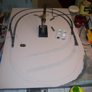 Now I wish I could say that my track work was great, heck I'd even be happy to say it was good, but at best my track work is passable. That's one of the reasons I decided to start with such a small project. I had a bunch of code 80 flex track, cork and blue foam left over from previous projects and that meant that this project was going to be a cheap way to improve my skills in N Scale.